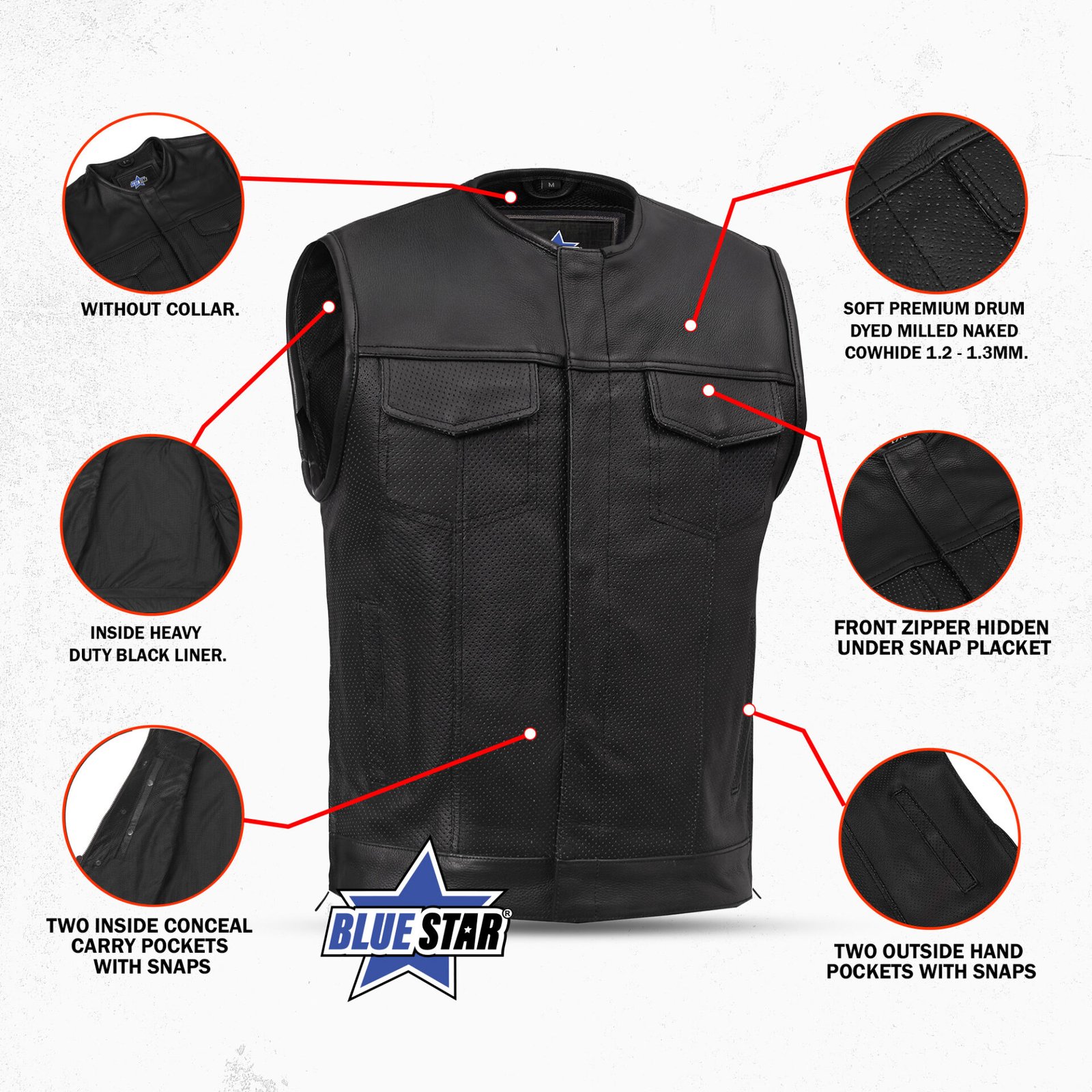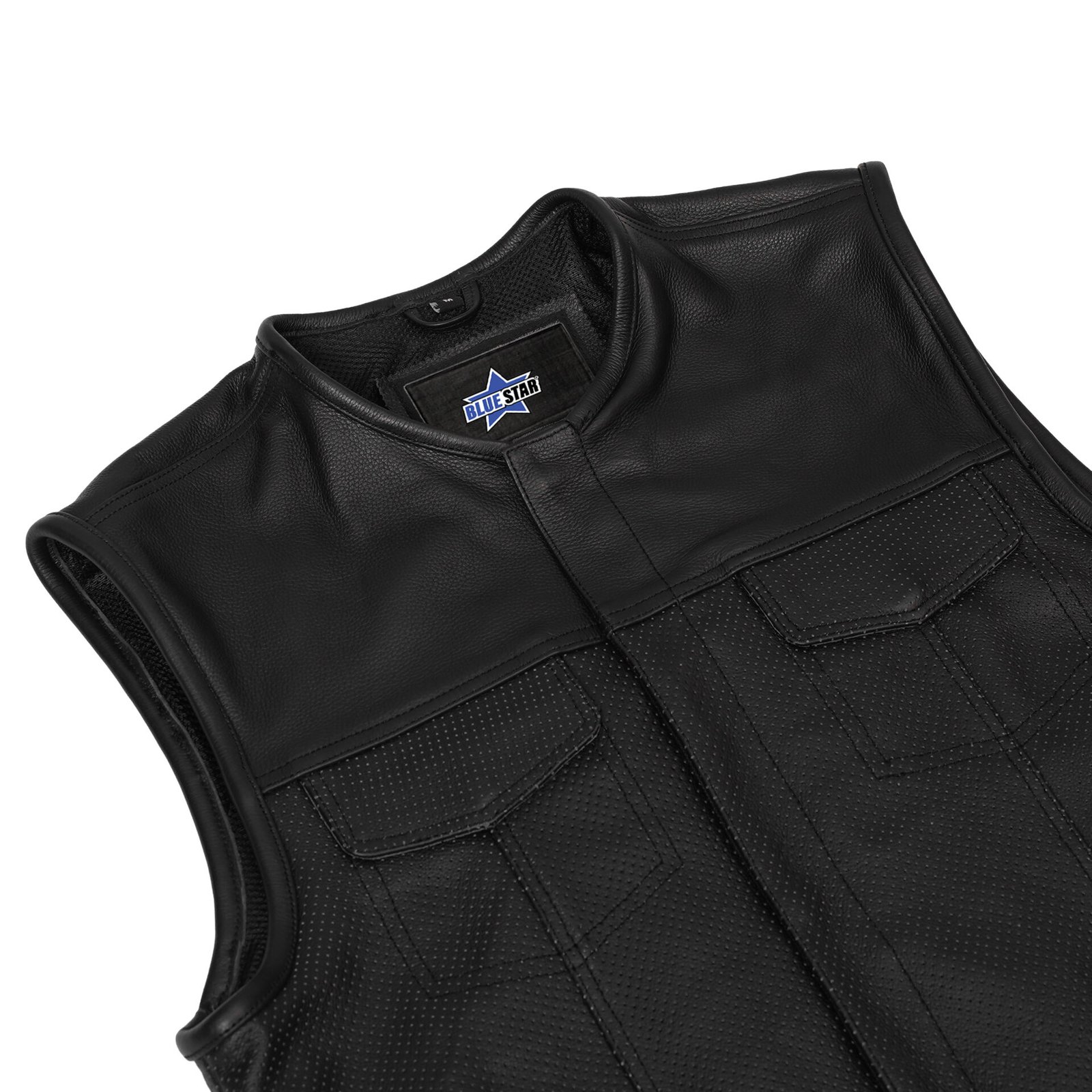 Enhance your style with a perforated leather vest from Blue Star Manufacturing. Place your order online today!
