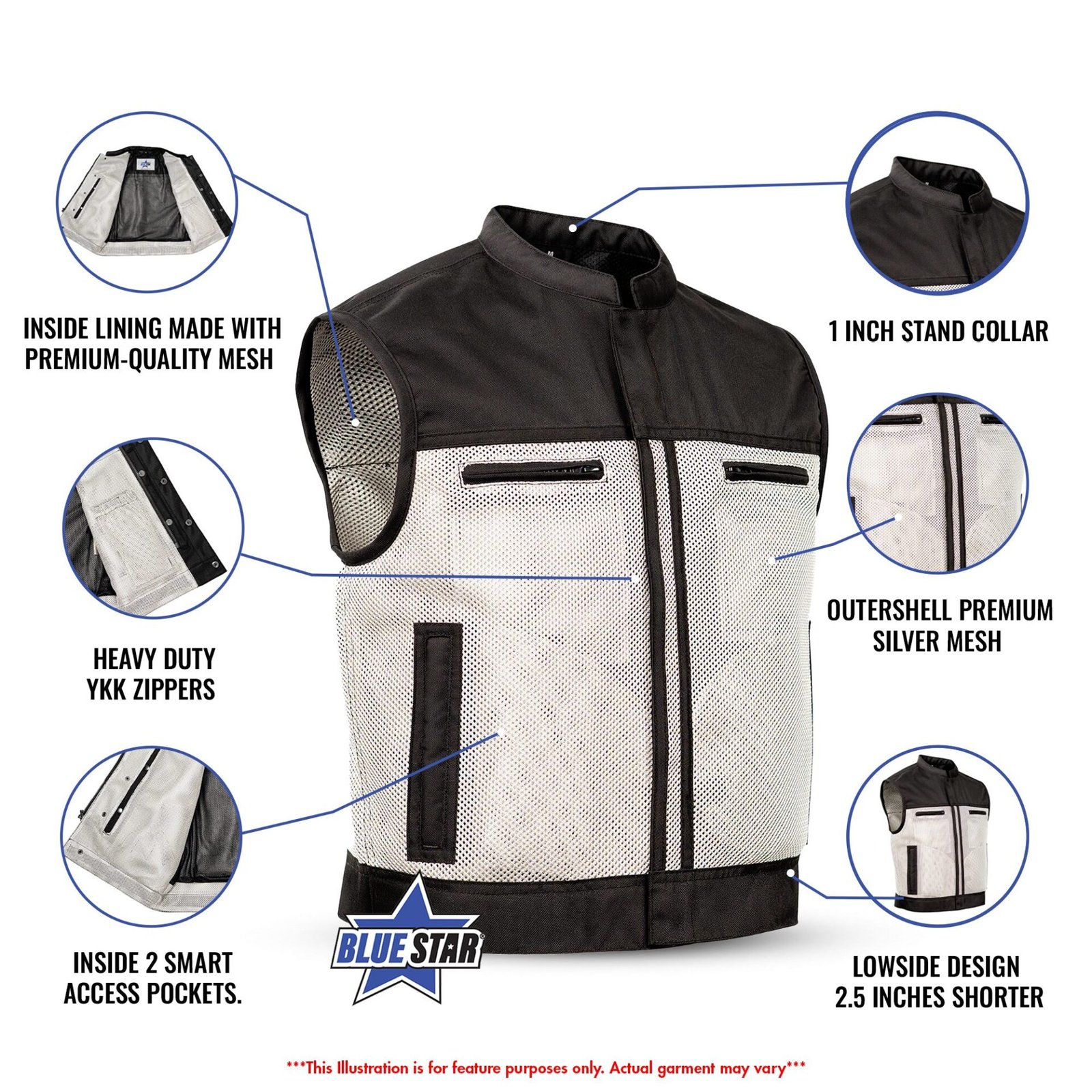 Ever thought of blending comfort, style, and breathability into one? We made it happen with the Silver Stream – Lowside Summer Spark Men’s Mesh Vest. Designed for the modern rider who values performance and sleek style, this vest symbolizes your passion for the open road and the biker lifestyle. With a lightweight, mesh design, it’s perfect for warm-weather rides while ensuring you stay cool and comfortable. The classic low-side cut is both flattering and functional, making it a versatile addition to your riding gear.