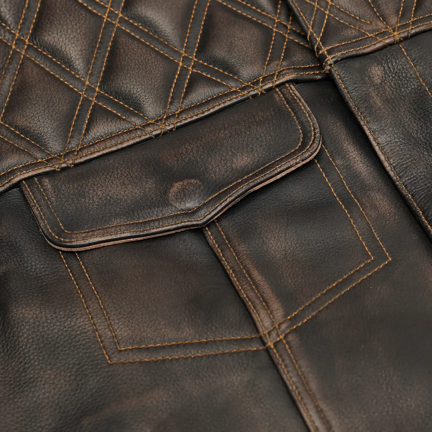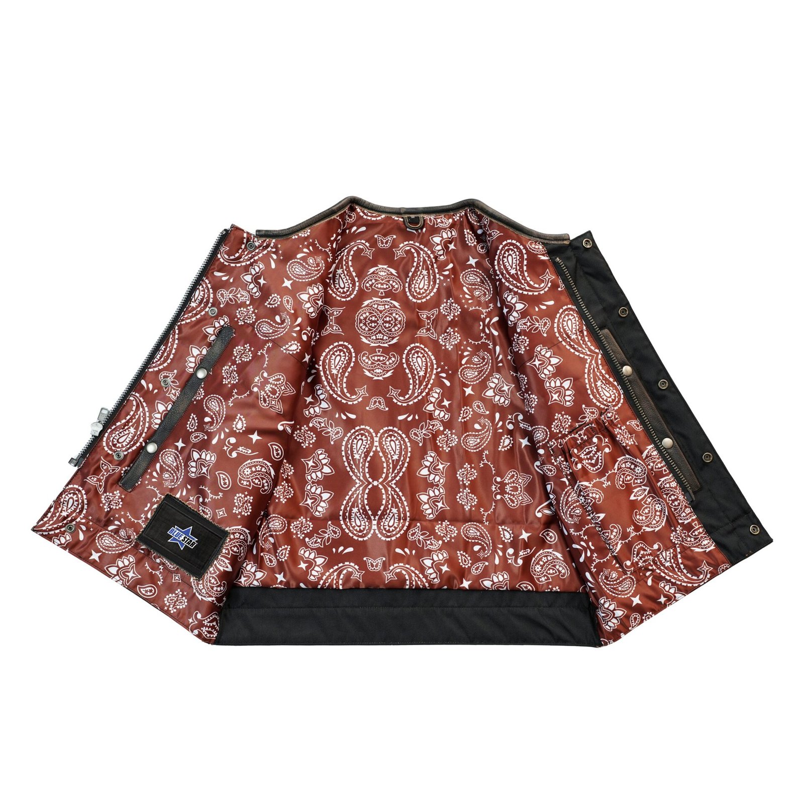 The Liberty Knight Men’s Leather Vest is built for those who value rugged strength and timeless appeal. Crafted from premium brown leather, the complete outer shell provides superior durability and a rich, natural finish that ages beautifully over time. Whether you’re on your bike or off the road, this vest offers the toughness and sophistication every rider needs. A vintage ruff finish on the outside combined with a paisley-designed inner lining gives it a classic yet bold character. The single-panel back is perfect for personal customizations like patches or club logos. The front is equipped with a 24″ original YKK metal zipper concealed under a secure snap-placket to guard against wind and rain, ensuring both functionality and style. Equipped with snap-button closures on two hand pockets and two chest pockets, the vest ensures your belongings stay safe and accessible. Inside, you’ll find dual gun pockets reinforced with heavy-duty materials and elastic holsters for firearms and magazines—designed with reinforced shoulder support for added strength and structure. Attention to detail is what makes the Liberty Knight stand out—from the 1″ Velcro closure on the mobile pocket to the 6″ and 1.5″ elastic bands used for holster and magazine storage. Finished with heavy-thread stitching for long-lasting wear, this vest is more than just a statement—it’s built for the road and the rider.