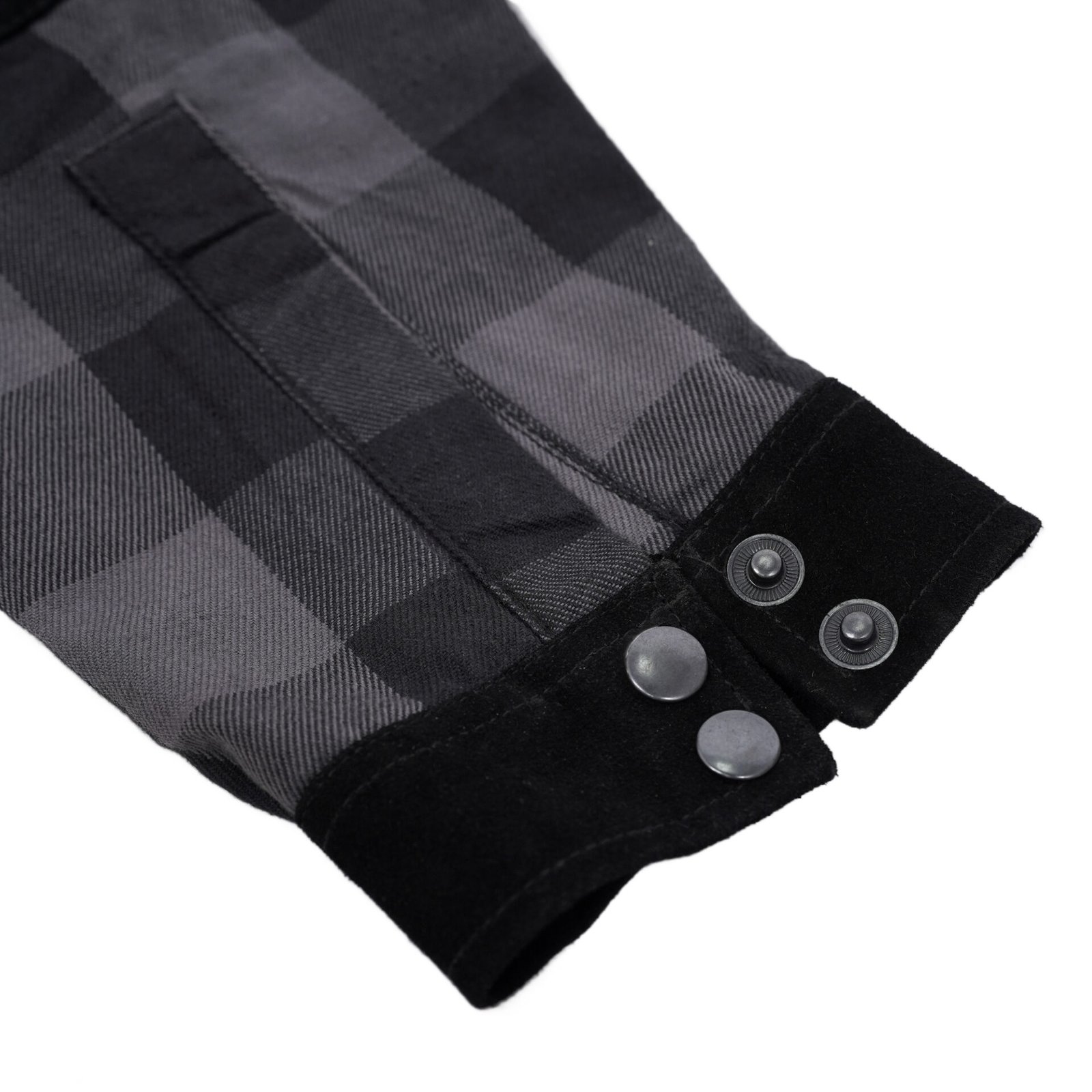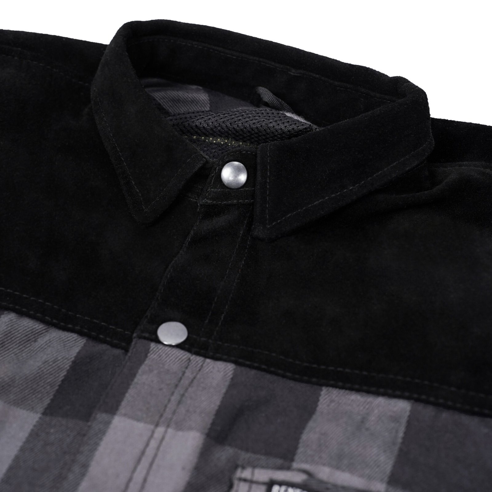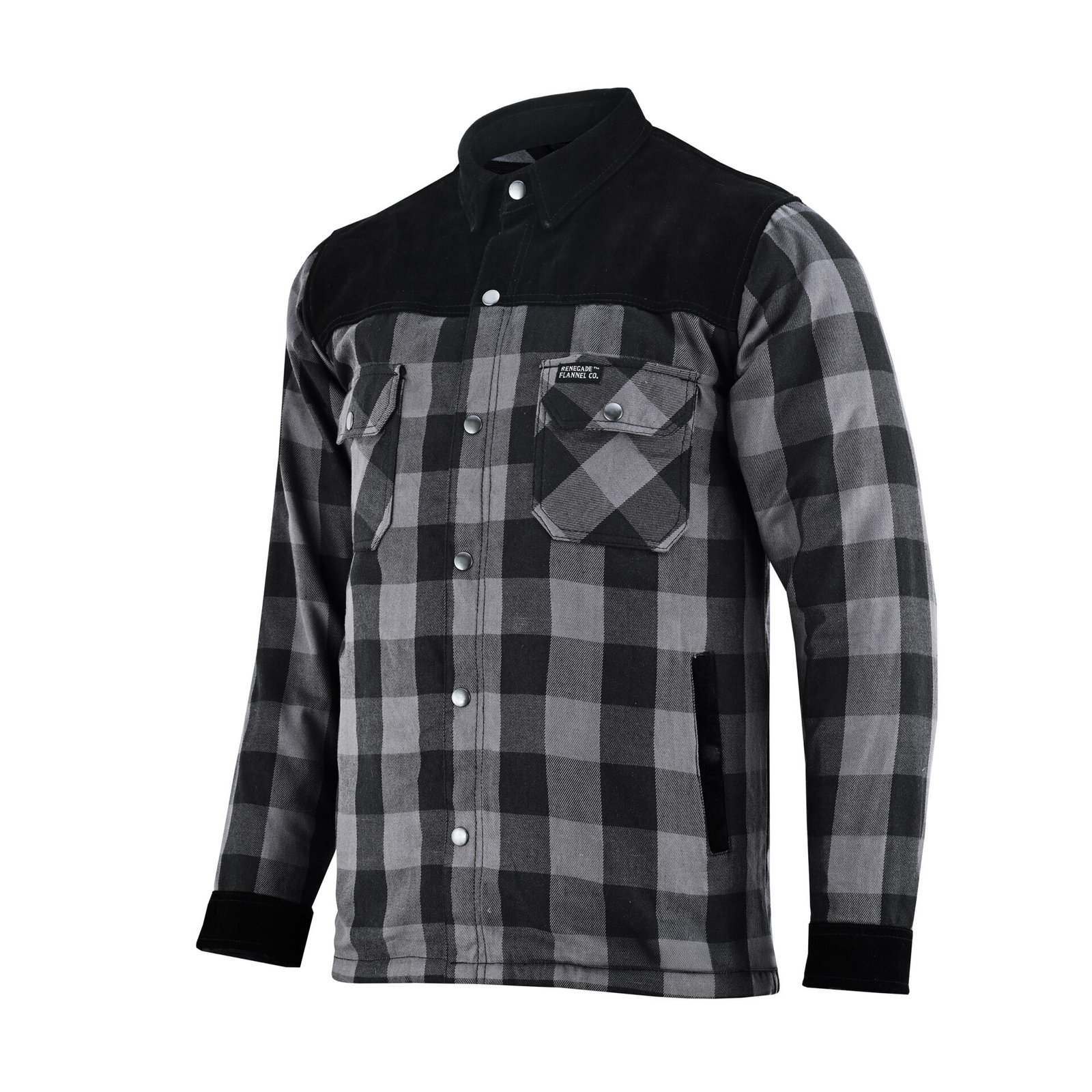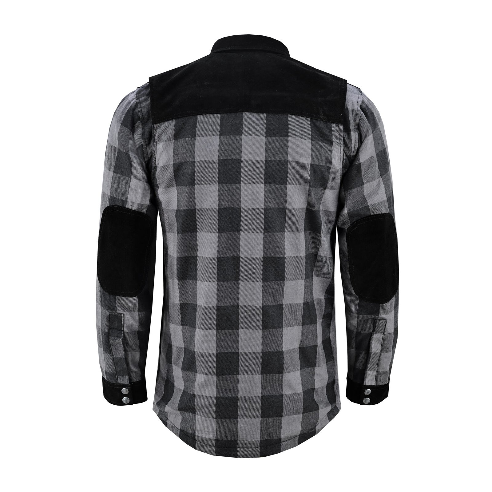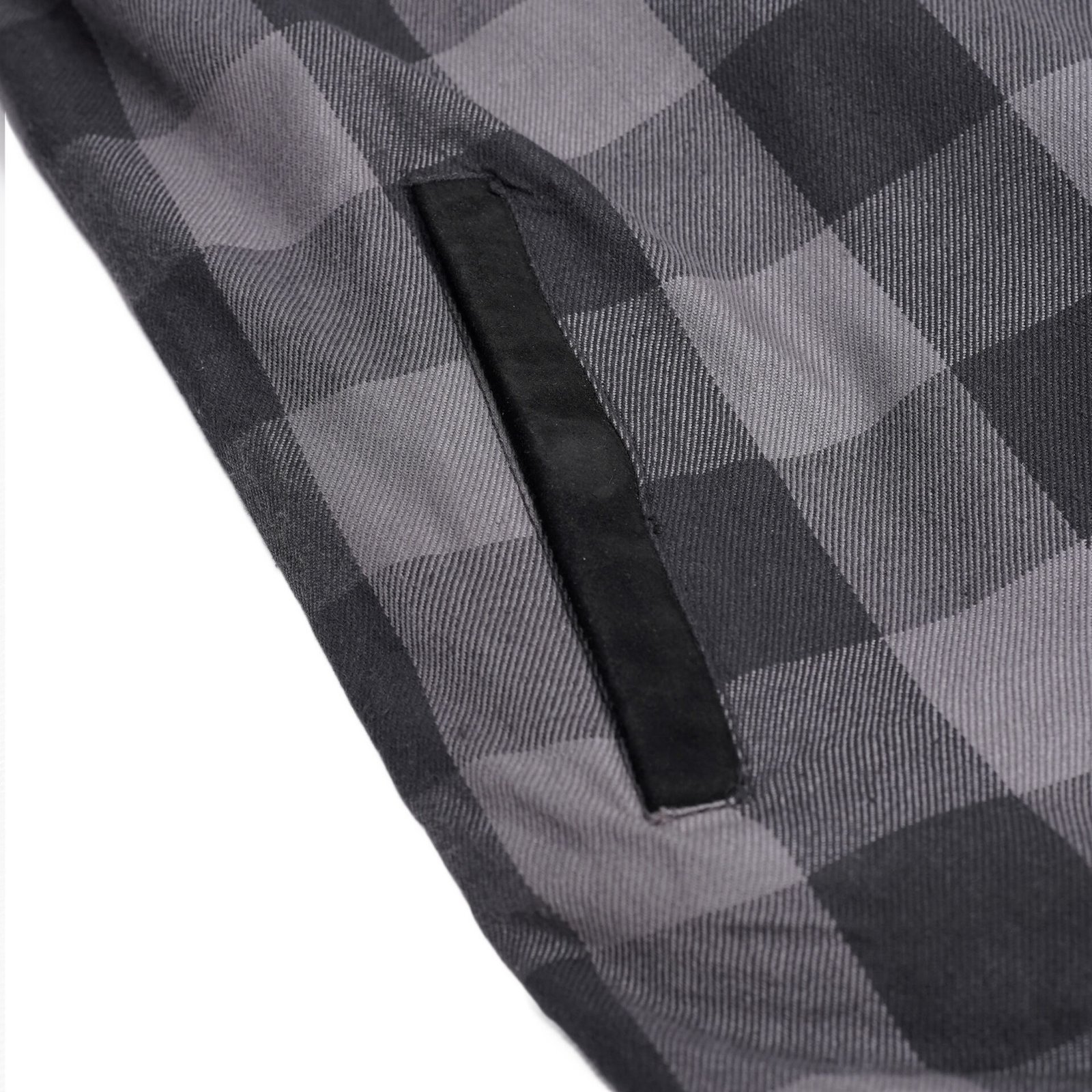 This black and gray flannel shirt delivers a classic, rugged look with neutral tones and leather patches, giving it a timeless yet edgy appeal. The feel is soft and breathable, thanks to the durable cotton flannel and micro-mesh inner lining, making it comfortable for everyday wear or extended rides. The design balances utility and style, providing easy access pockets and flexibility for movement, so you’re ready for whatever the road throws your way.