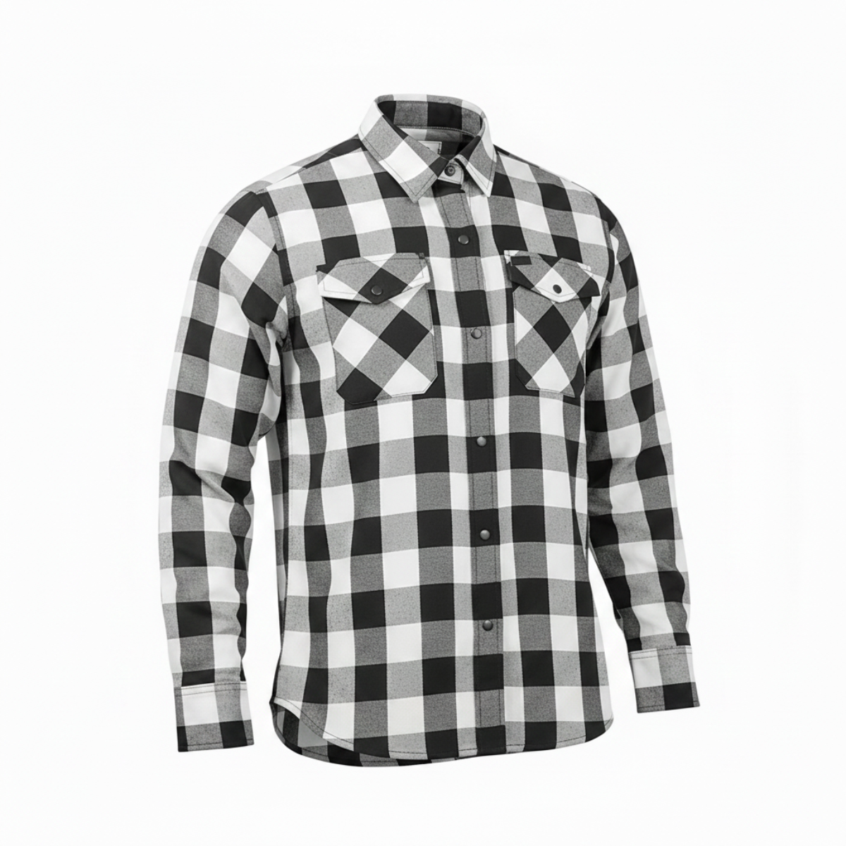 The Stonepine Men’s Flannel Shirt combines comfort and durability in a relaxed-fit design. Crafted from 100% cotton blend Fabric with plaid pattern, it offers soft breathability and long-lasting wear. The button-down collar and squared cuffs provide a clean, structured look, while Flap chest pockets with button closures add practicality. Reinforced stitching enhances strength at key points. The shirt features inside microfiber accents for glasses cleaning. Perfect for riding or casual wear, it balances style, function, and comfort.