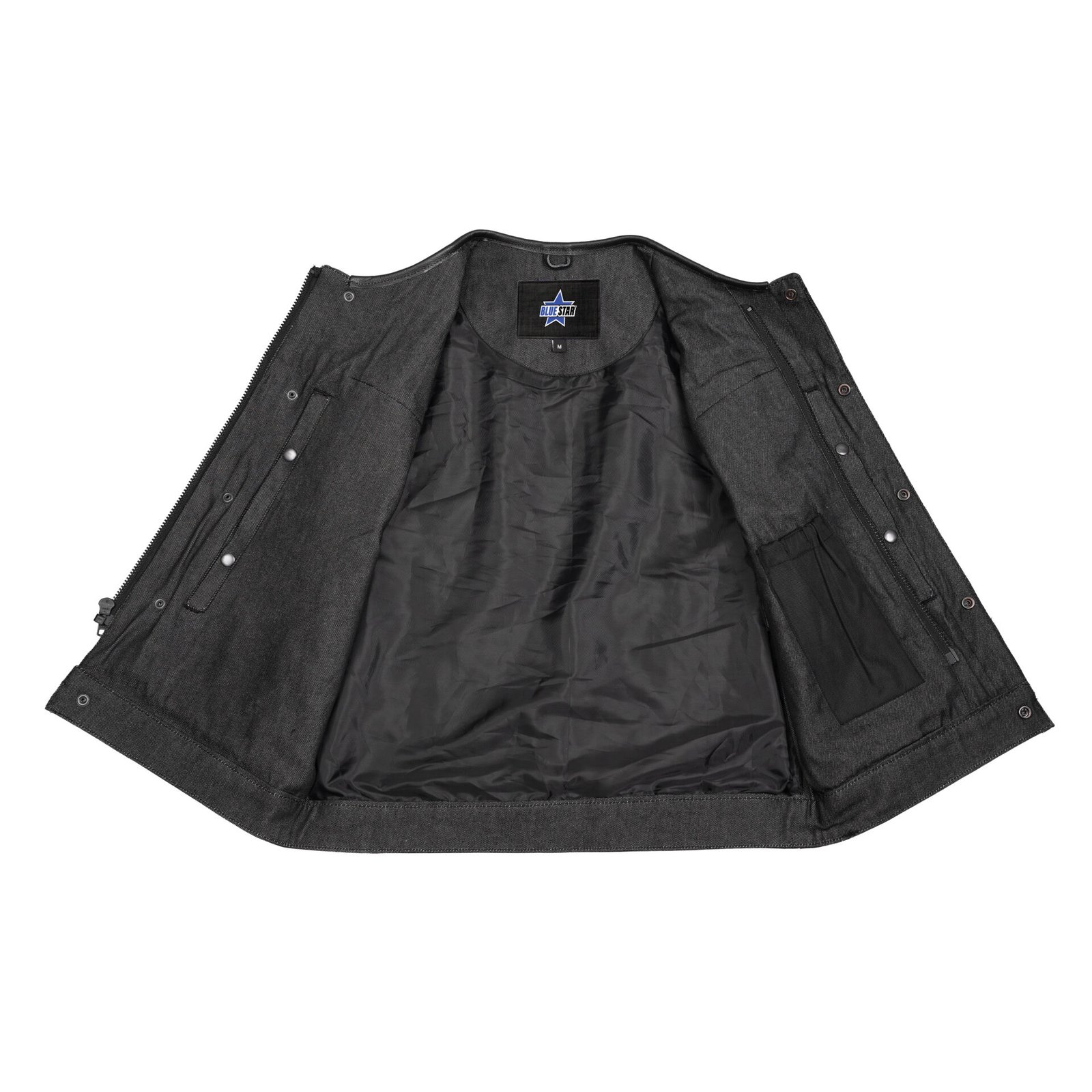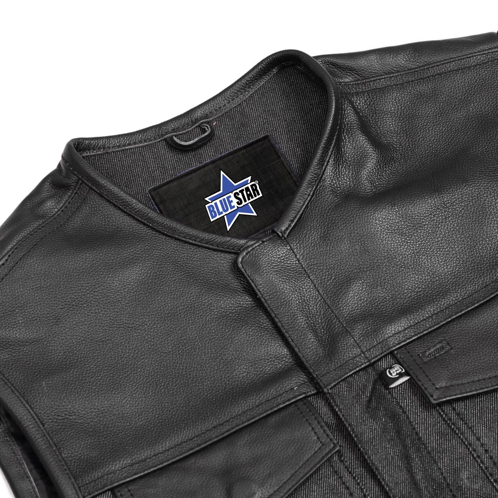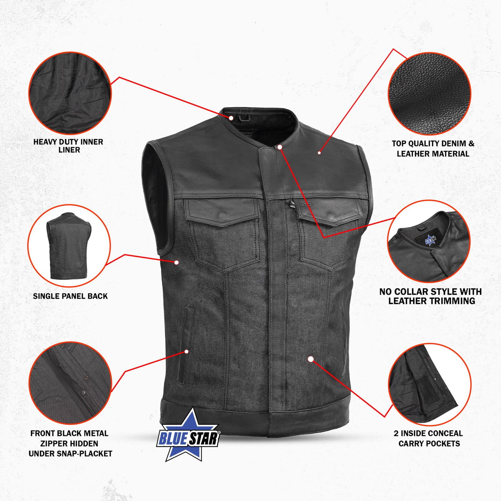 BSM4594 Men’s Leather/Denim Combo Vest Without Collar