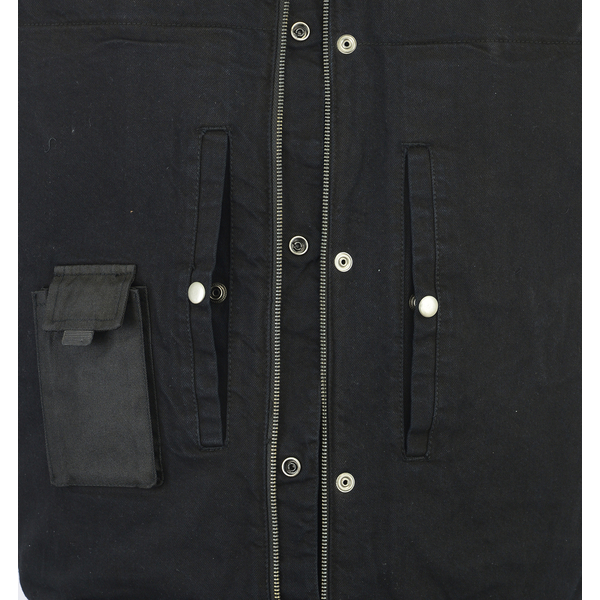 2 upgraded style concealed gun pockets between the snap and the zipper made of special heavy duty textile with built-in holsters and snap closure.