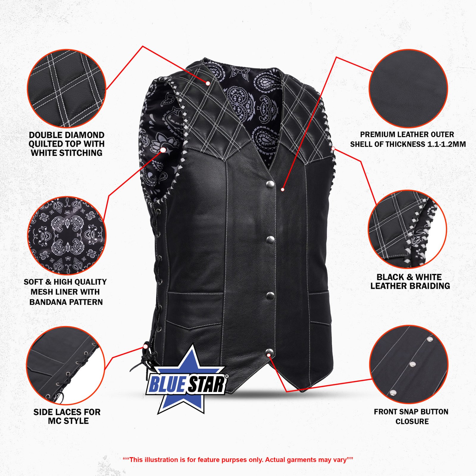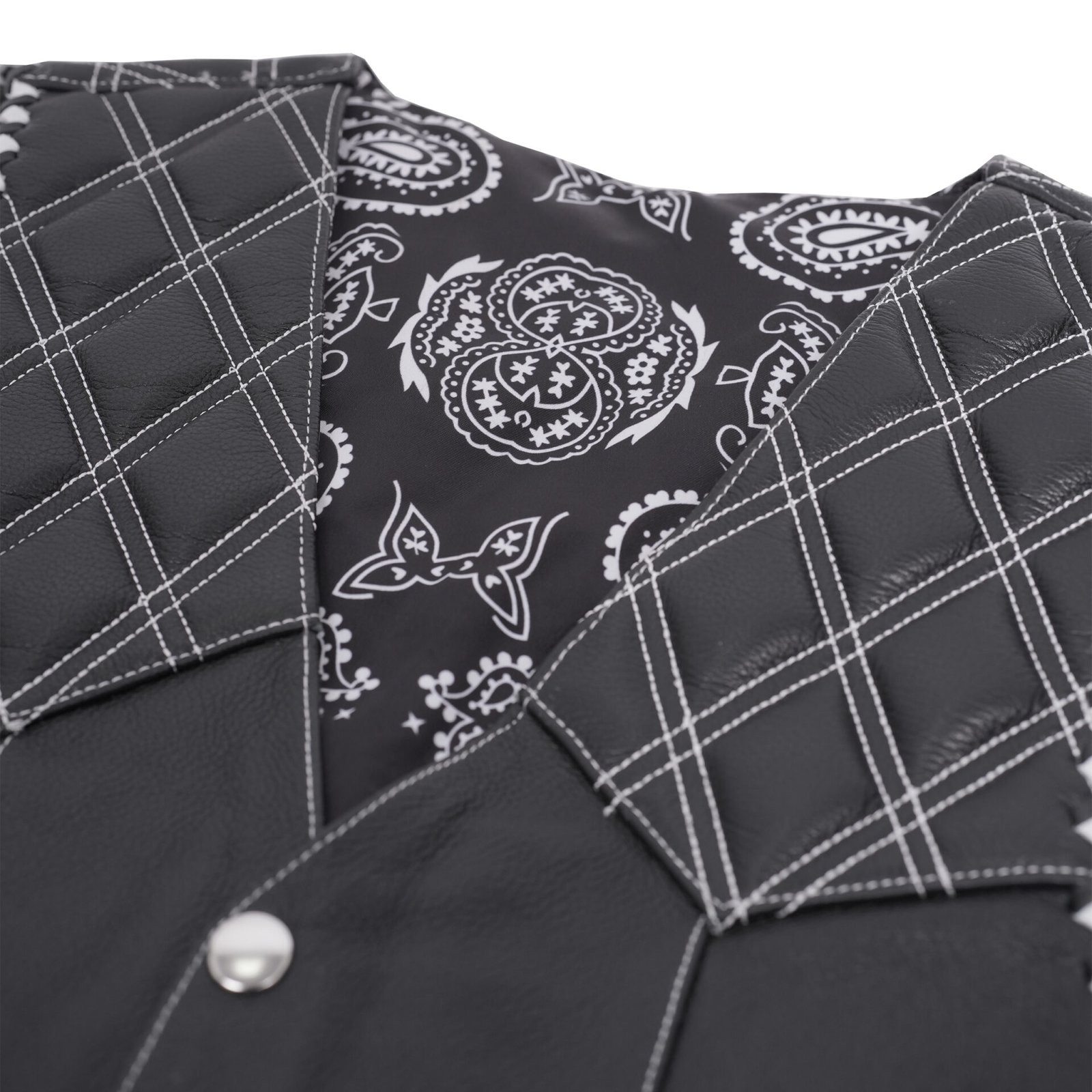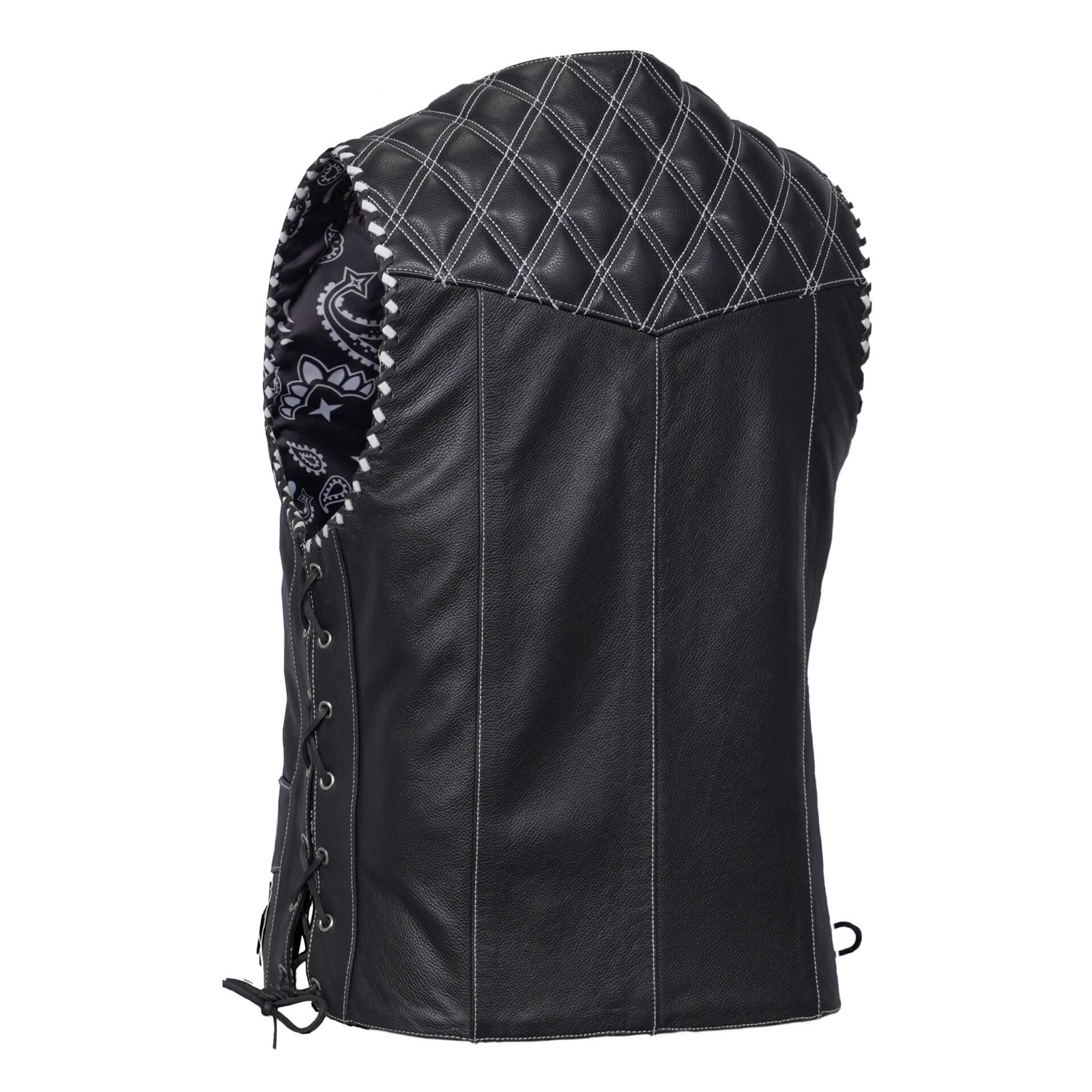 The Velrik Men’s Leather Vest is designed for riders who want both durability and style on the road. Made from premium quality leather, this vest features quilted shoulder panels with contrast stitching that give it a bold edge. The snap-button front closure ensures easy wear, while the adjustable side laces provide a custom fit for comfort during long rides. Inside, a paisley bandana-print lining adds a touch of attitude. With practical front pockets and a strong, timeless design, the Velrik vest is more than just gear, it’s a statement of biker pride.